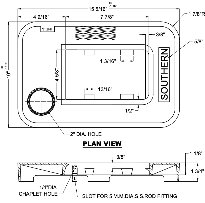 Solid Cast Iron Lid with Recess and 2" T.R. Hole